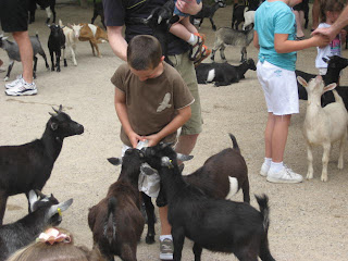 My parents came to visit a few weeks ago and we went to Grant's Farm for my nephew's birthday. Gavin and Madison always enjoy feeding the goats and petting the animals. Madison is such an animal lover and it's hard to get her out of the pen. Usually the goats start eating her clothes so that makes her get out a little quicker. We sure had a fun visit with Grandpa and Grandma Binks! Gavin always had a herd of goats following him.